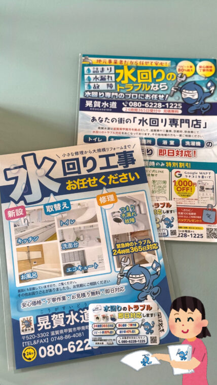 この度、晃賀水道をより多くの方に知っていただくために各地域に、チラシ・マグネットを配布させていただきます。